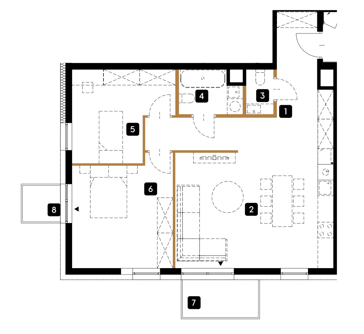 | B1.4.07 | 68.12 m2 | 3 | 4 | Loggia 5.08 m2 |