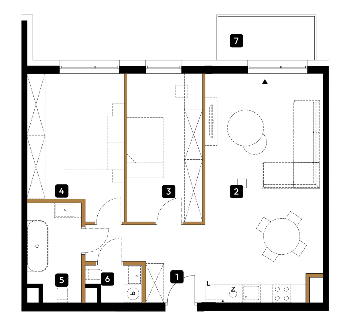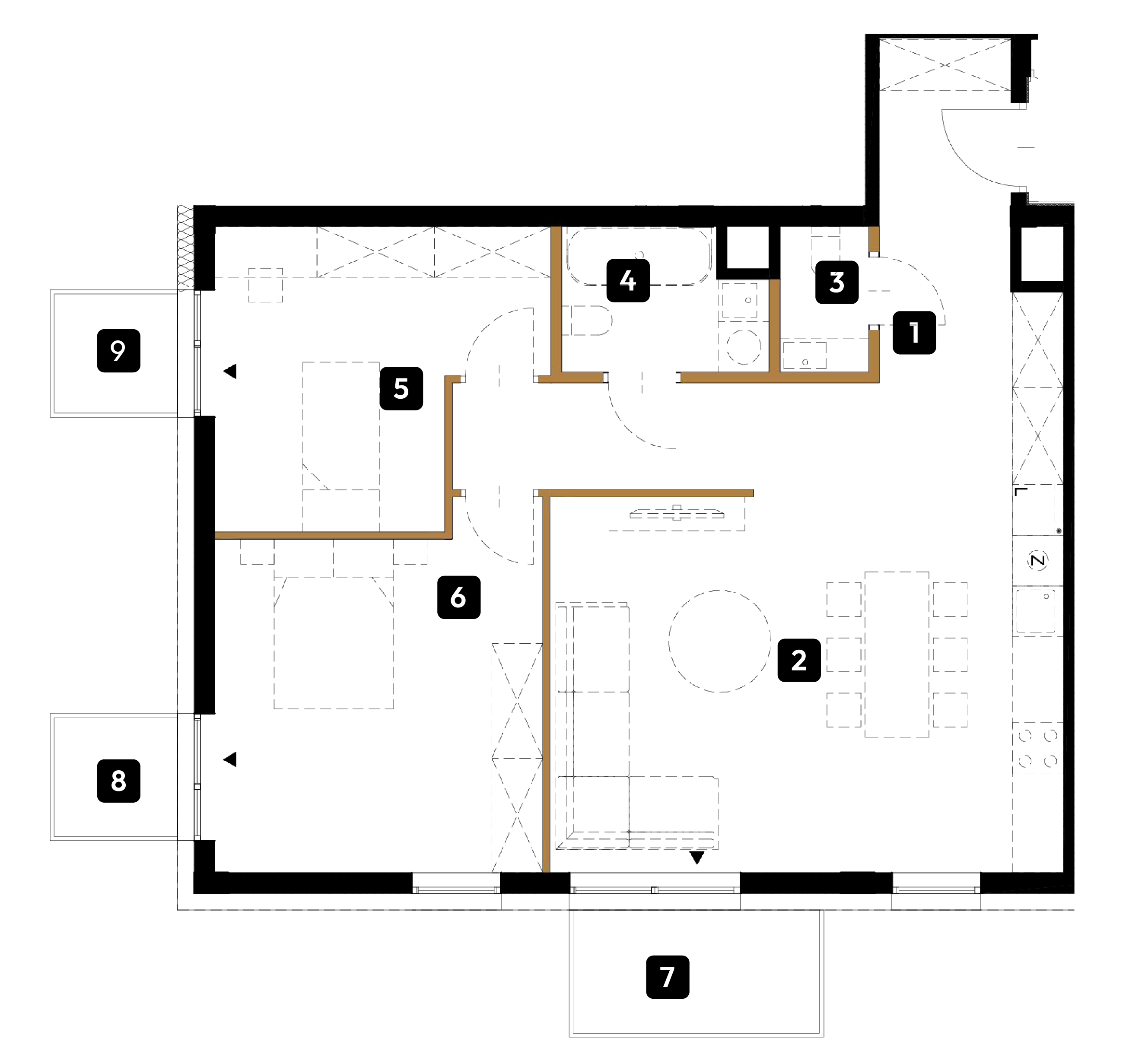 M6.02 | 53.44 m2 | 2 | 6 | Balkon 4.21 m2 | Południowy-zachód |