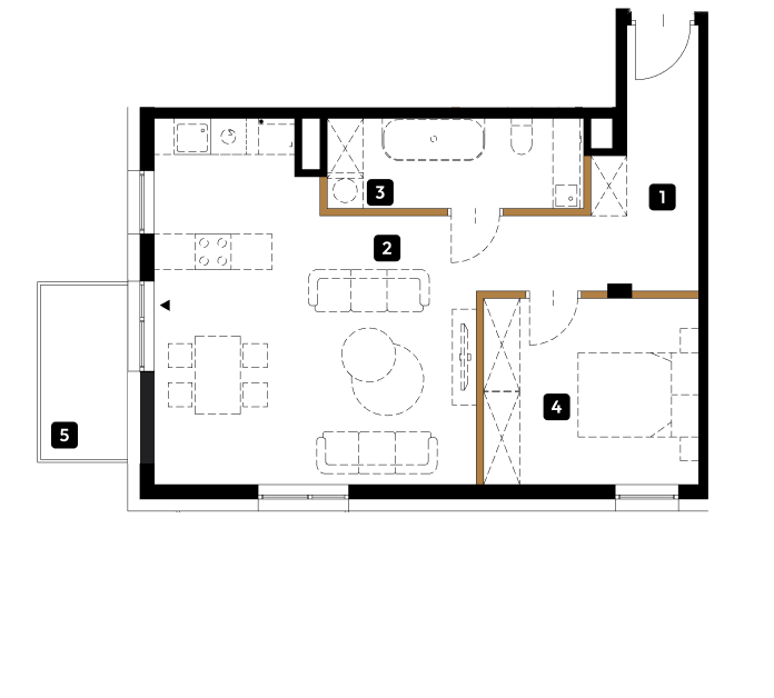 M5.05 | 26.25 m2 | 1 | 5 5 | Balkon 3.12 m2 | Zachód |